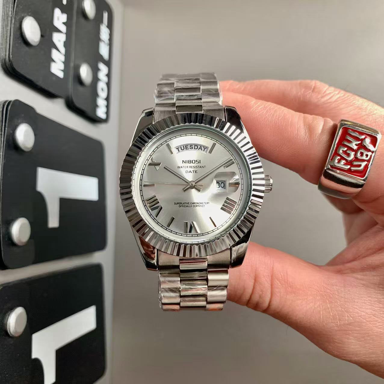 Classic vintage business watches men's non-mechanical logbook hip-hop trend steel belt calendar niche temperament women's gold watches