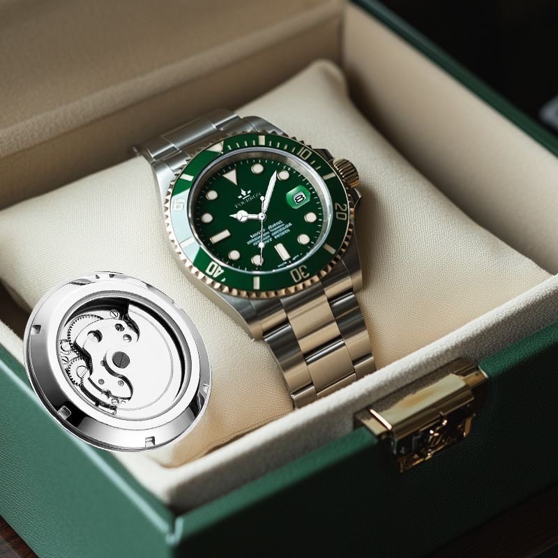 Genuine mechanical watches green water ghost glow in the dark waterproof stainless steel hollow men's gift high-end luxury watch business casual