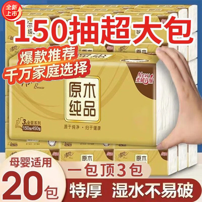 Qingfeng 150 drawing paper gold pack 3 layers M size household affordable napkins toilet paper whole box of towels mother and baby bag