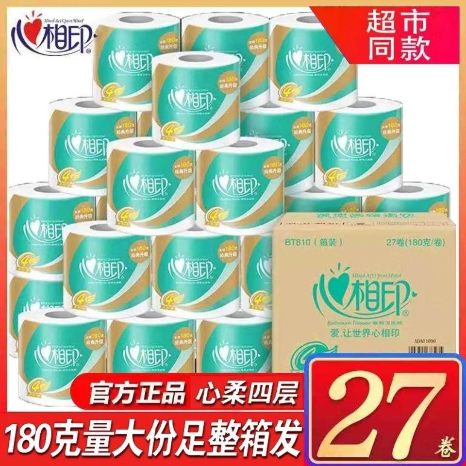 Heart-printed roll paper 4 layers 180g gram 27 grains Xinrou series toilet paper towels with core roll toilet paper BT810
