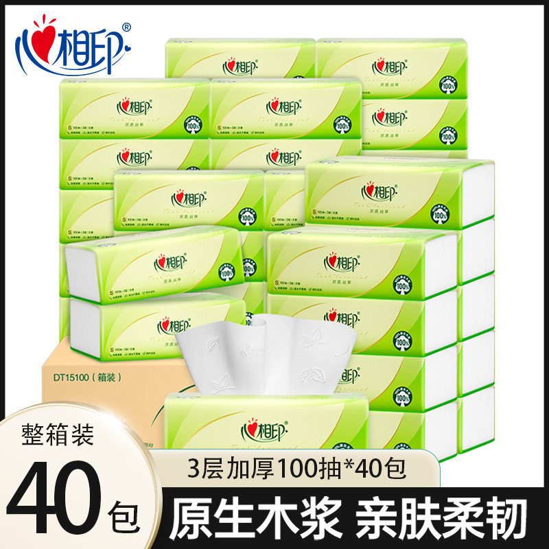 【PLUS Member】Heart Xiangyin Tea Silk Enjoy Drawing Paper 100 Draws 3 Layers of Soft Skin Thickened Paper Towels Napkins Paper Towels