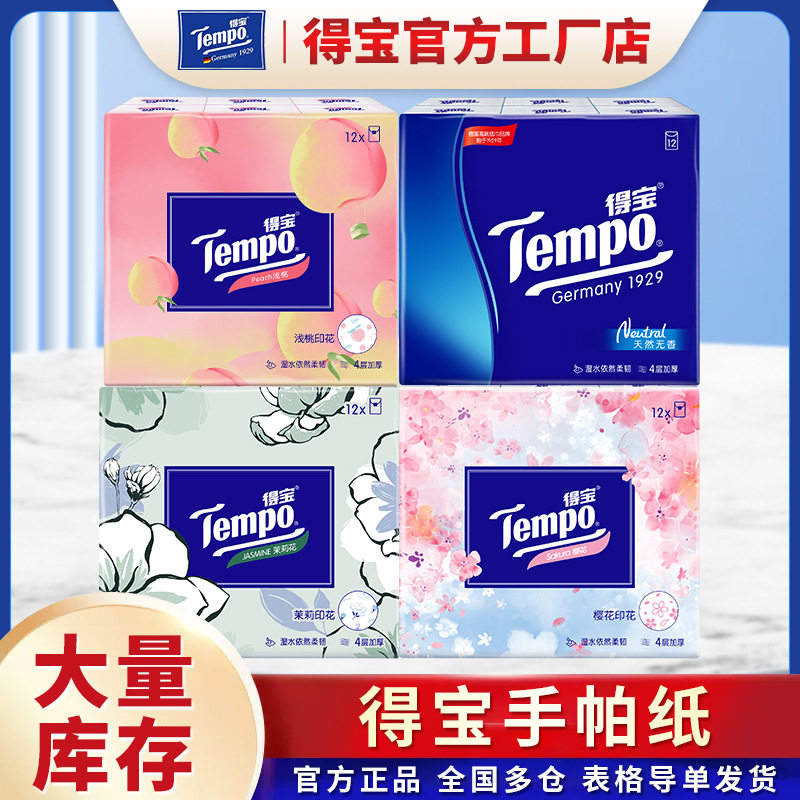 Tempo Handkerchief Paper Small Pack Dehuaxiang 4 Layers Thickened 12 Packs Portable Napkin Tissue for Going