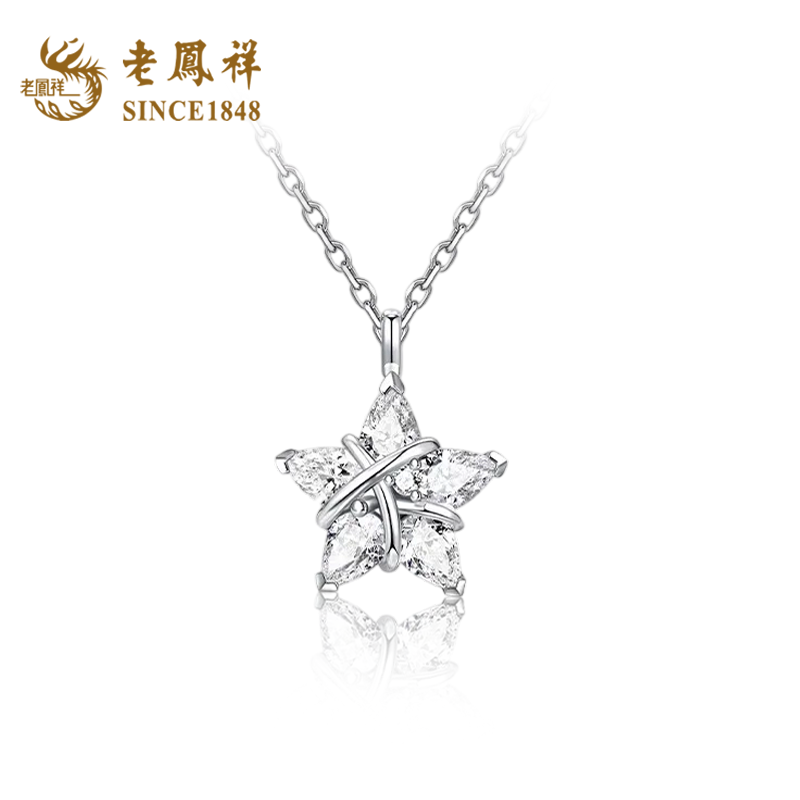 Lao Fengxiang Lucky Star Necklace Female Star Pendant S925 Sterling Silver Clavicle Chain Premium Christmas Gift for Girlfriend