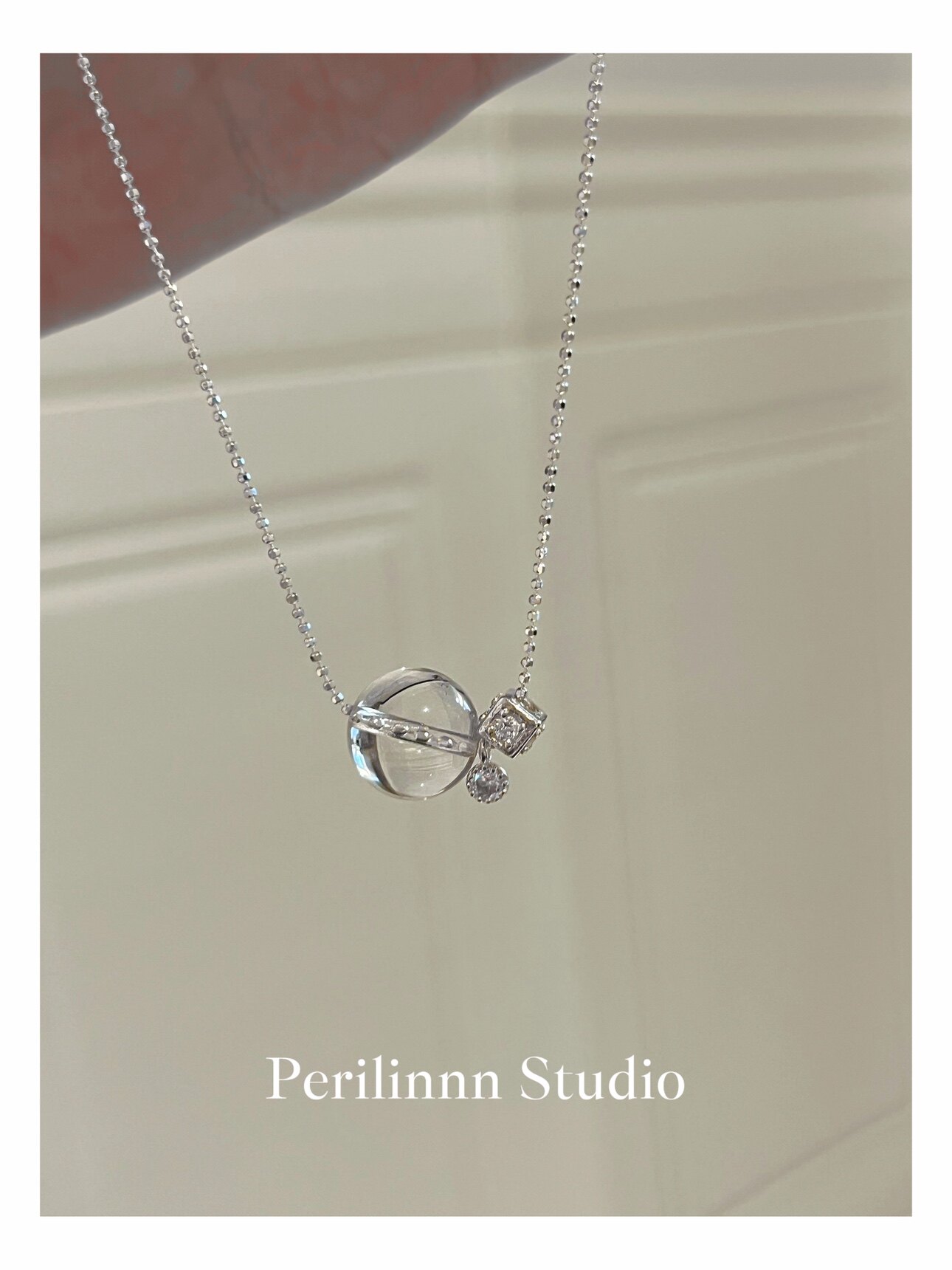 Perilinnn "Ningguang" natural double A white crystal necklace s925 silver zircon shiny sterling silver chain gift