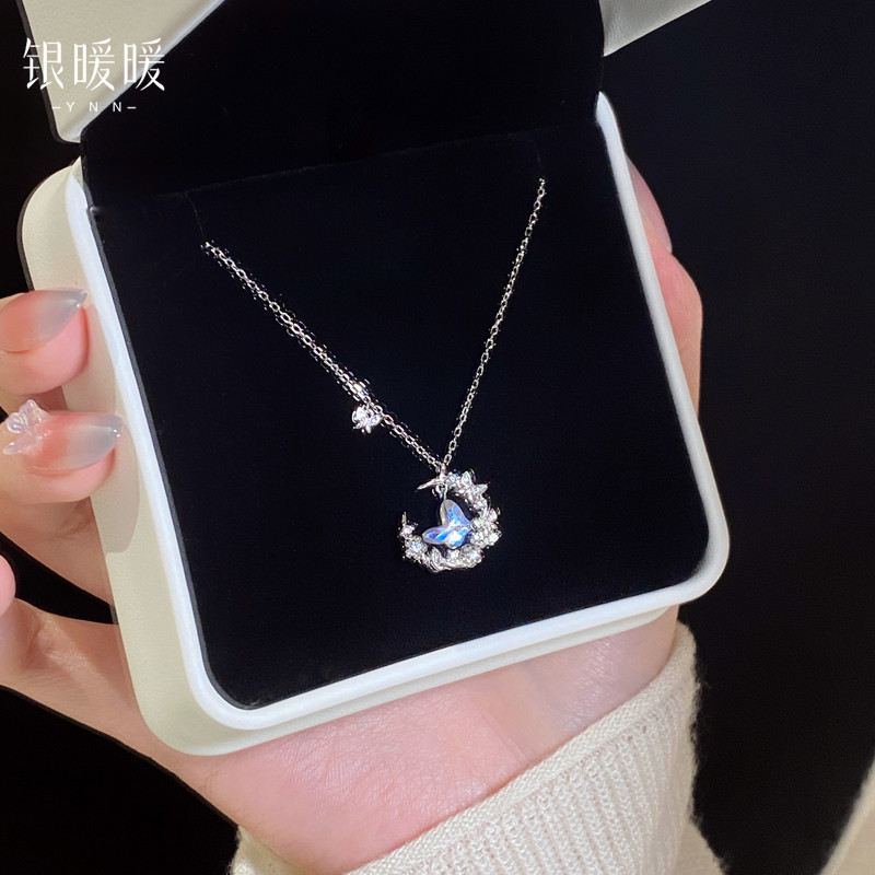 Original moon butterfly necklace women's new S999 sterling silver foot silver moon pendant girlfriend birthday gift for girlfriend