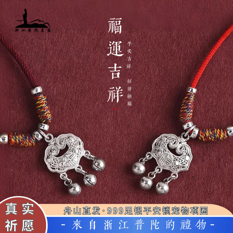 Putuo Mountain Foot Silver Peace Lock Pet Collar Necklace Woven Cat Dog Adjustable Small Dog Snood Pendant