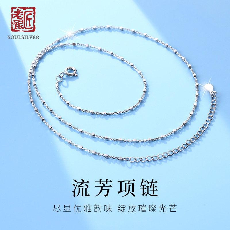 Old silversmith S925 silver necklace women's simple and versatile square plain chain without pendant single chain extension chain sterling silver clavicle chain