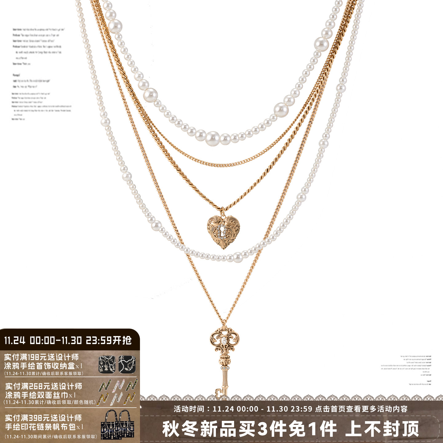 SUMIYAKI Vintage Love Lock Cylinder Series Multi-layer Pearl Necklace Niche Sweater Chain Detachable