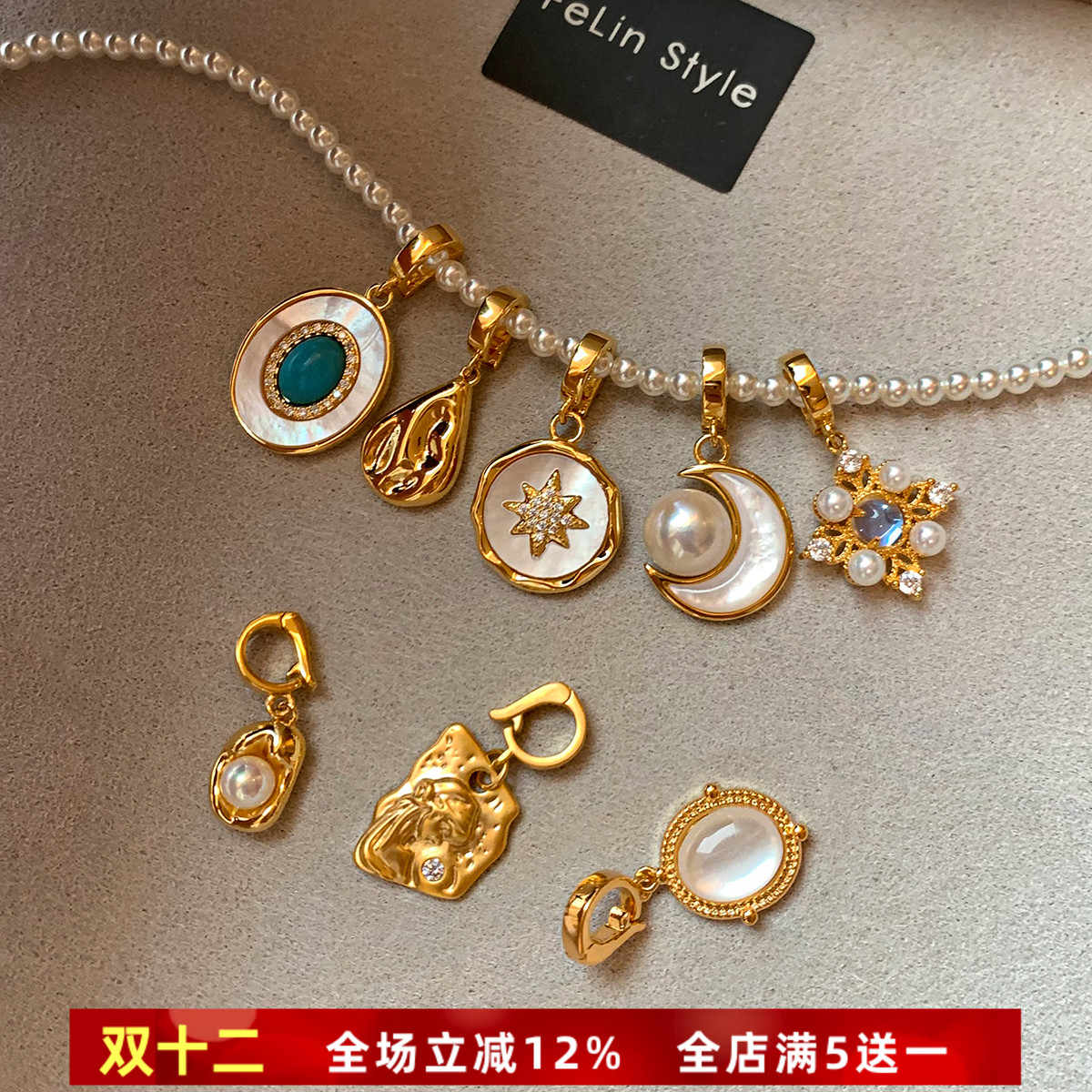 Detachable DIY Natural Fritillaria Turquoise Freshwater Pearl Necklace Pendant Universal Buckle Ornament Mother Oyster Accessories