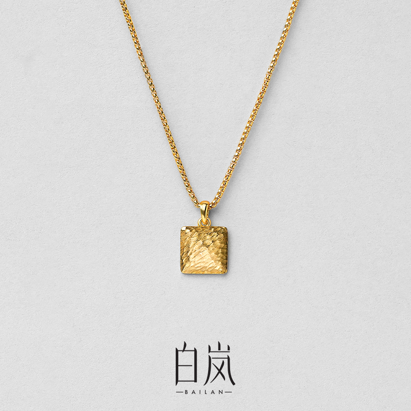 JANENG Chasing Shore 925 Silver Square Keel Necklace Unisex Vintage Distressed Unisex with Silver Jewelry