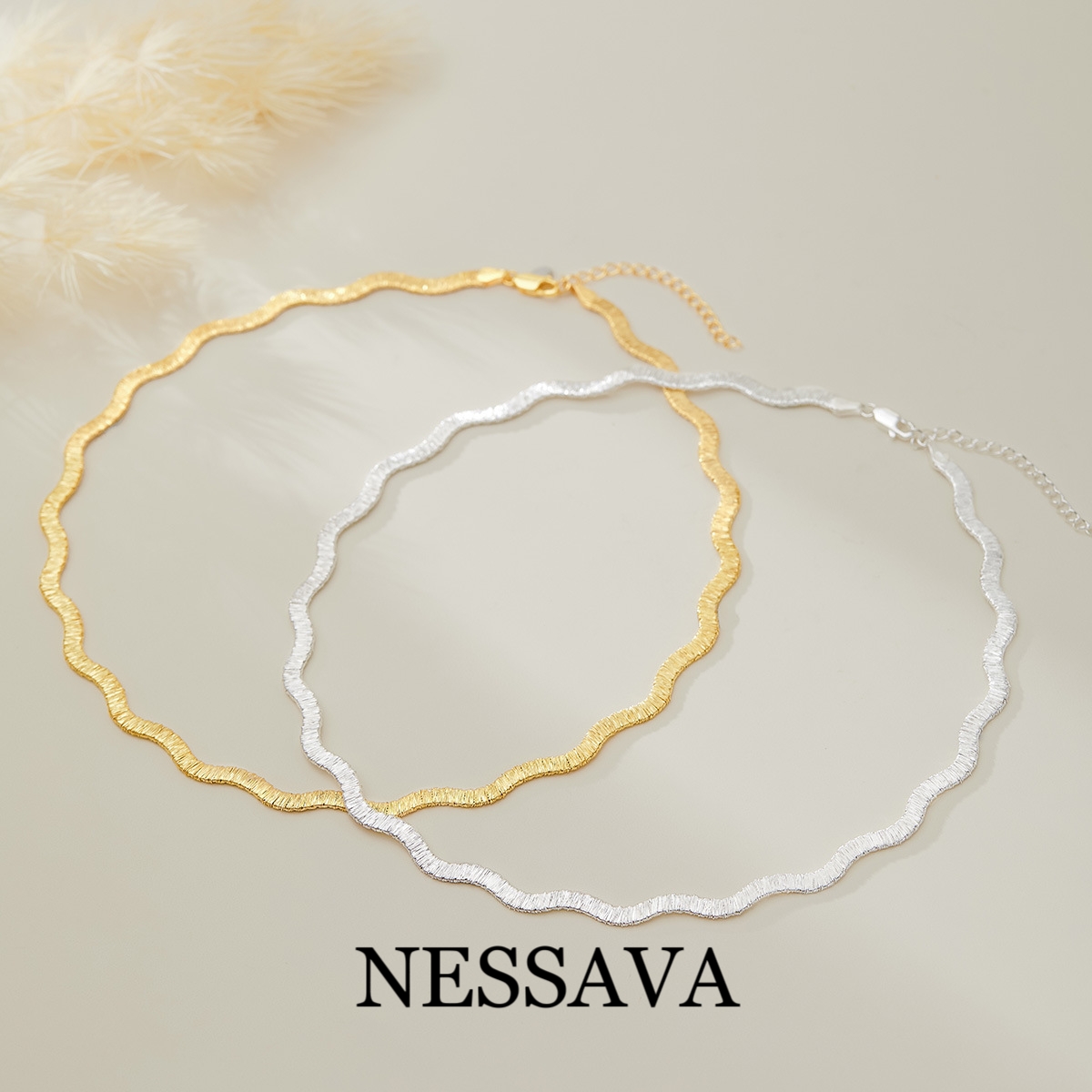 Italy S925 silver wave brushed fashion necklace women's European and American style high-end K-plated gold temperament imported collar