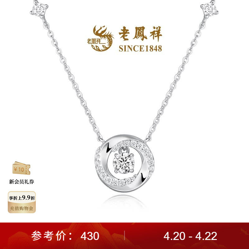 Lao Fengxiang Mobius ring star moon accompanied by gypsophila 925 silver necklace women's 520 gift
