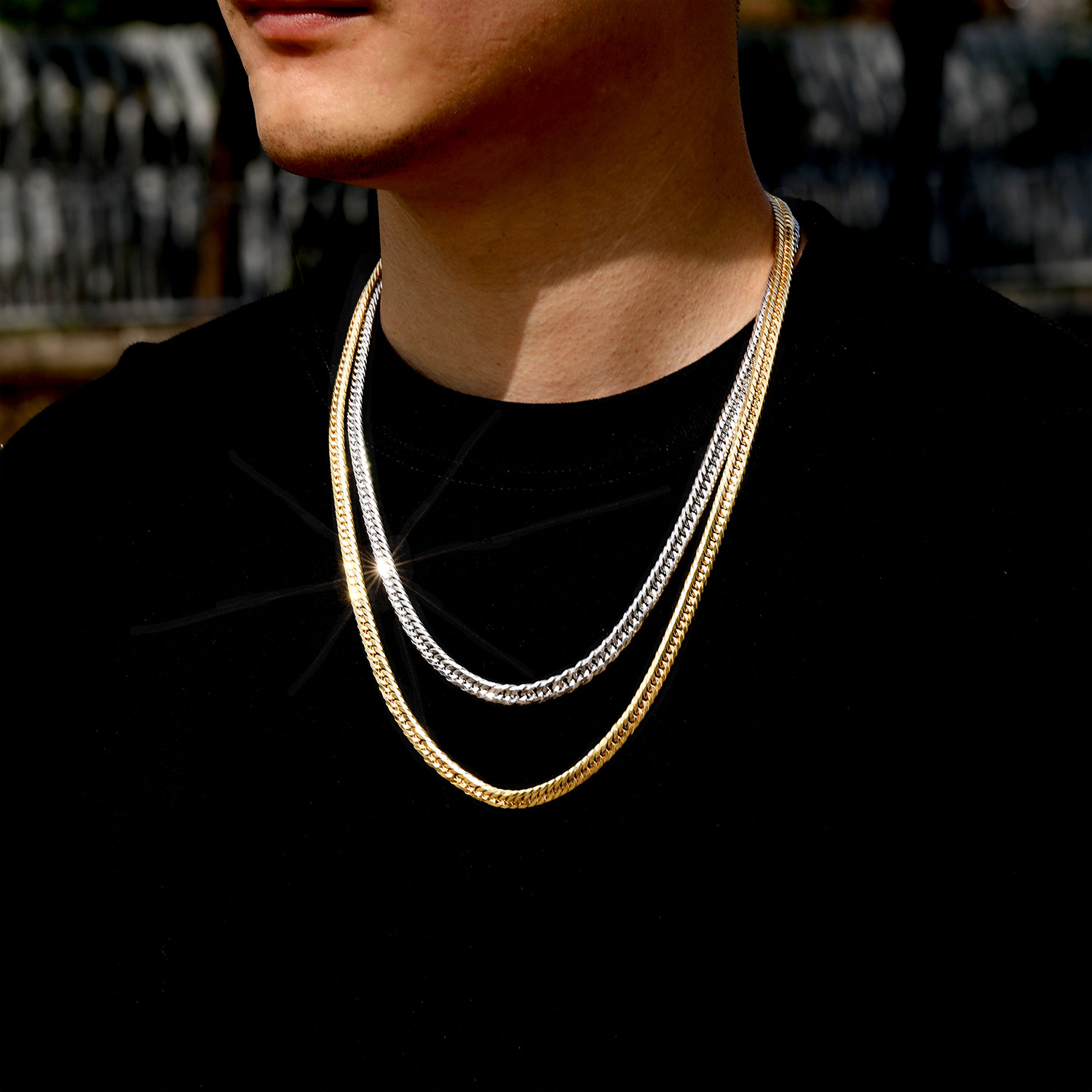 Seiko 12-cut sterling silver Xiping necklace sterling silver Cuban necklace men's white gold necklace simple light luxury solid necklace