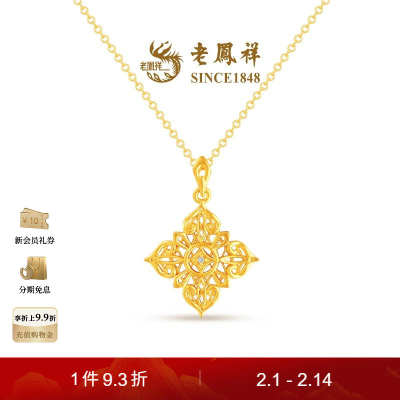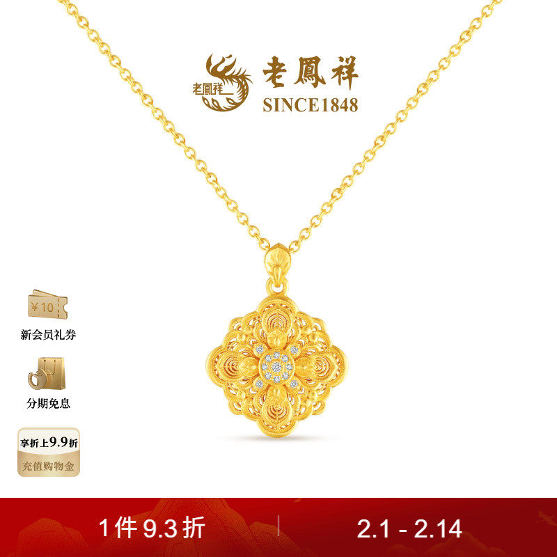 Lao Fengxiang Feng Yu Sihe Ruyi Openwork Diamond Gold Pure Gold Necklace Women Valentine's Day Gift
