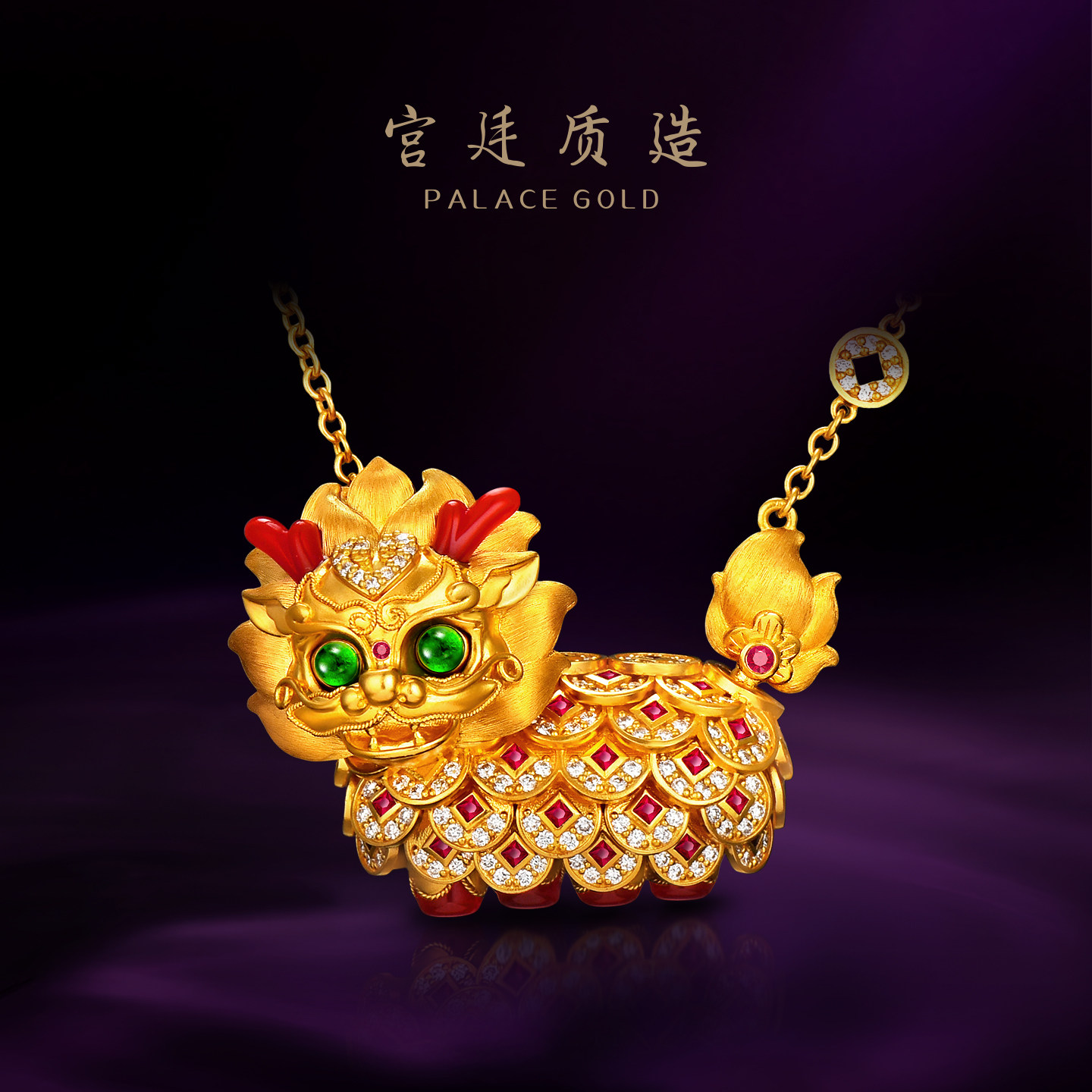 Palace quality ancient handmade gold unicorn smart pendant pure gold diamond gold necklace pendant necklace