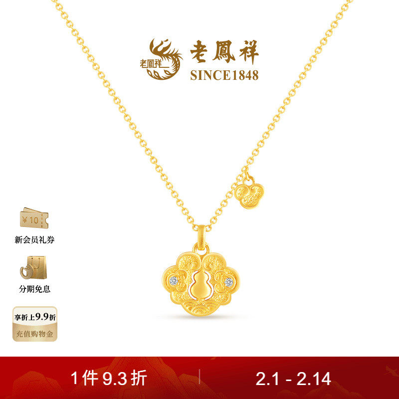 Lao Fengxiang Fulu Lock Bag Wealth Elegant Diamond Gold Pure Gold Necklace Women Valentine's Day Gift