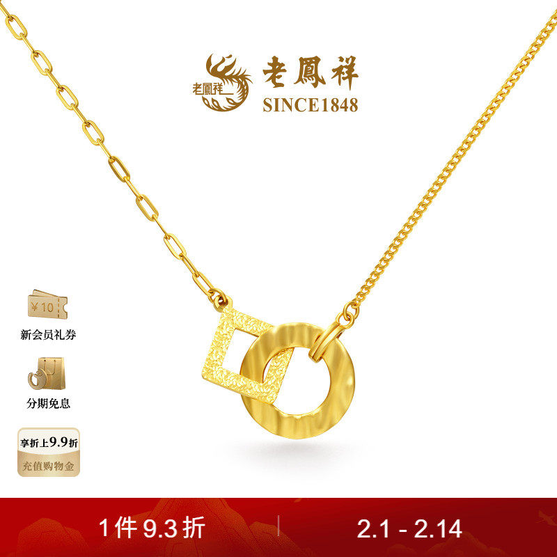 Lao Feng Xiangfan series interlocking crushed ice gold pure gold necklace priced Valentine's Day gifts