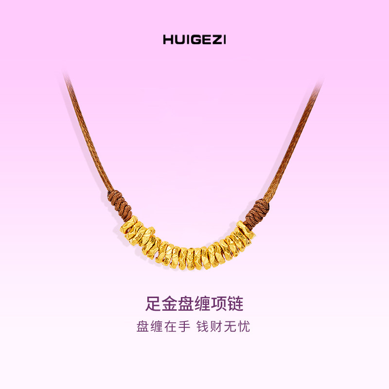 HUIGEZI gold coil necklace 999 pure gold coil wrap wealth prosperous couple holiday birthday gift for girlfriend