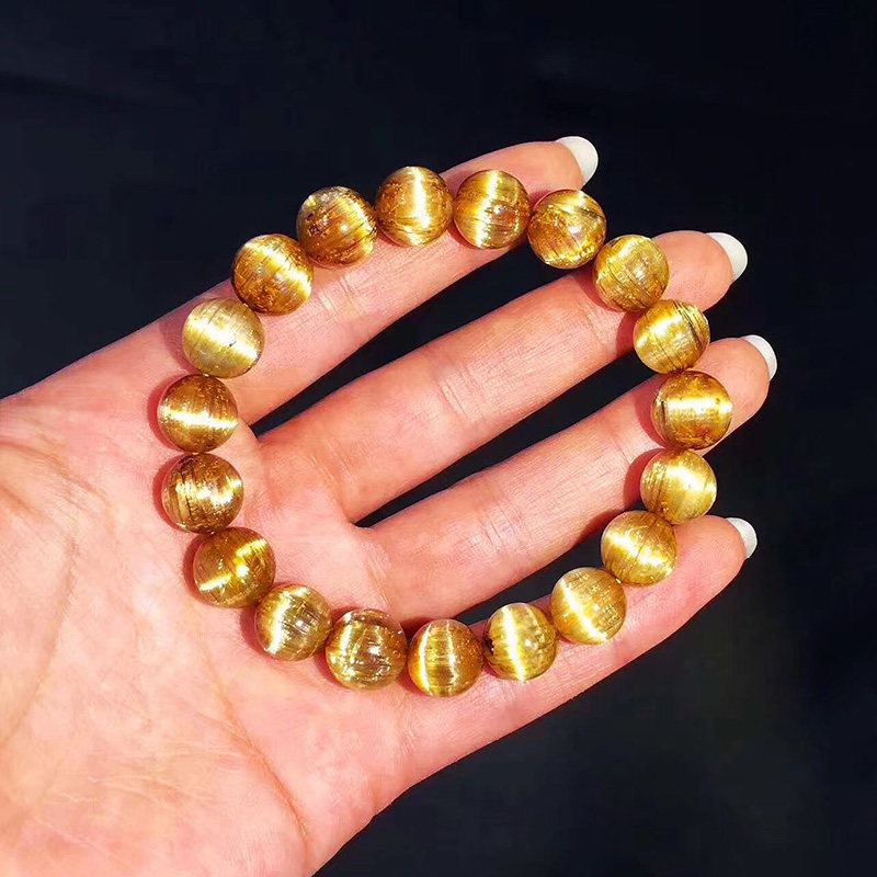 Natural Brazilian titanium crystal bracelet blonde crystal smooth plate titanium cat's eye bracelet single more 3 triple circle Buddha bead necklace for men and women