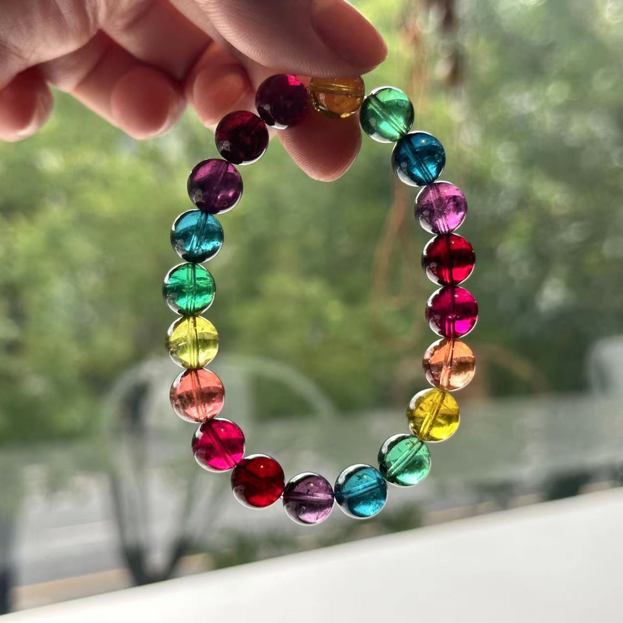 Zhile tourmaline bracelet female natural Brazilian tourmaline bracelet rainbow color scale bright mermaid color fluorescent watermelon tourmaline