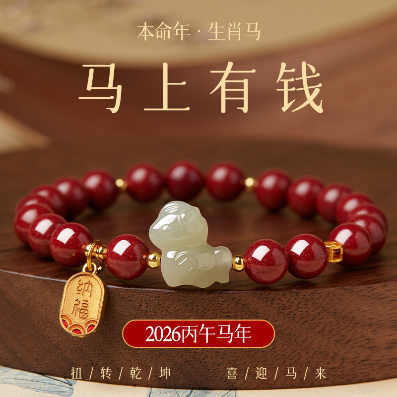 2026 Year of the Horse Natal Year Cinnabar Bracelet Women's Hetian Jade Zodiac Horse Red Bracelet Women's Gift Amulet