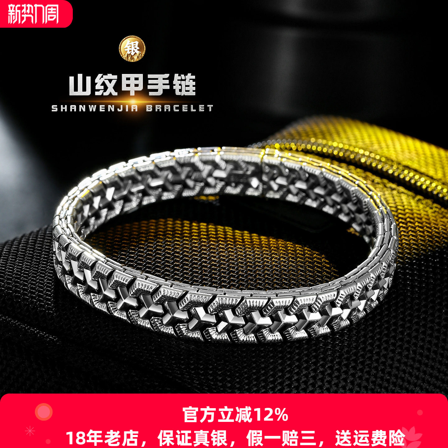 High-end sense s925 silver mountain nail bracelet sterling silver men's new national style wide silver jewelry trend light luxury retro
