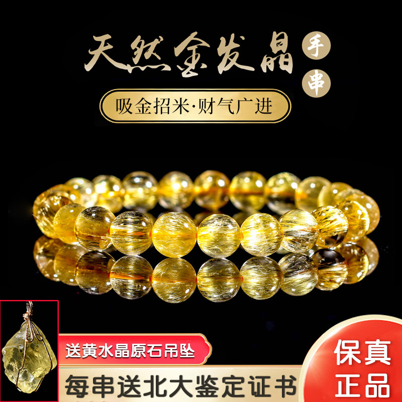 Natural blonde crystal bracelet for women Brazilian gold titanium crystal male yellow hair crystal citrine rough bracelet collection level