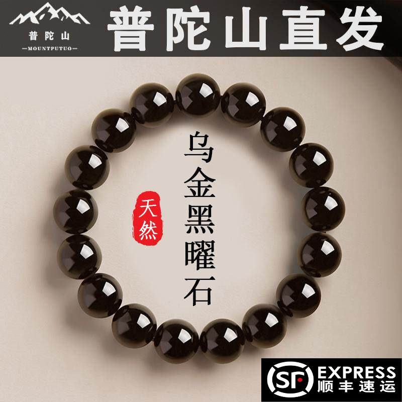 Putuo Mountain obsidian bracelet men's and women's crystal bracelets couples good luck beads gift Buddha beads natal year