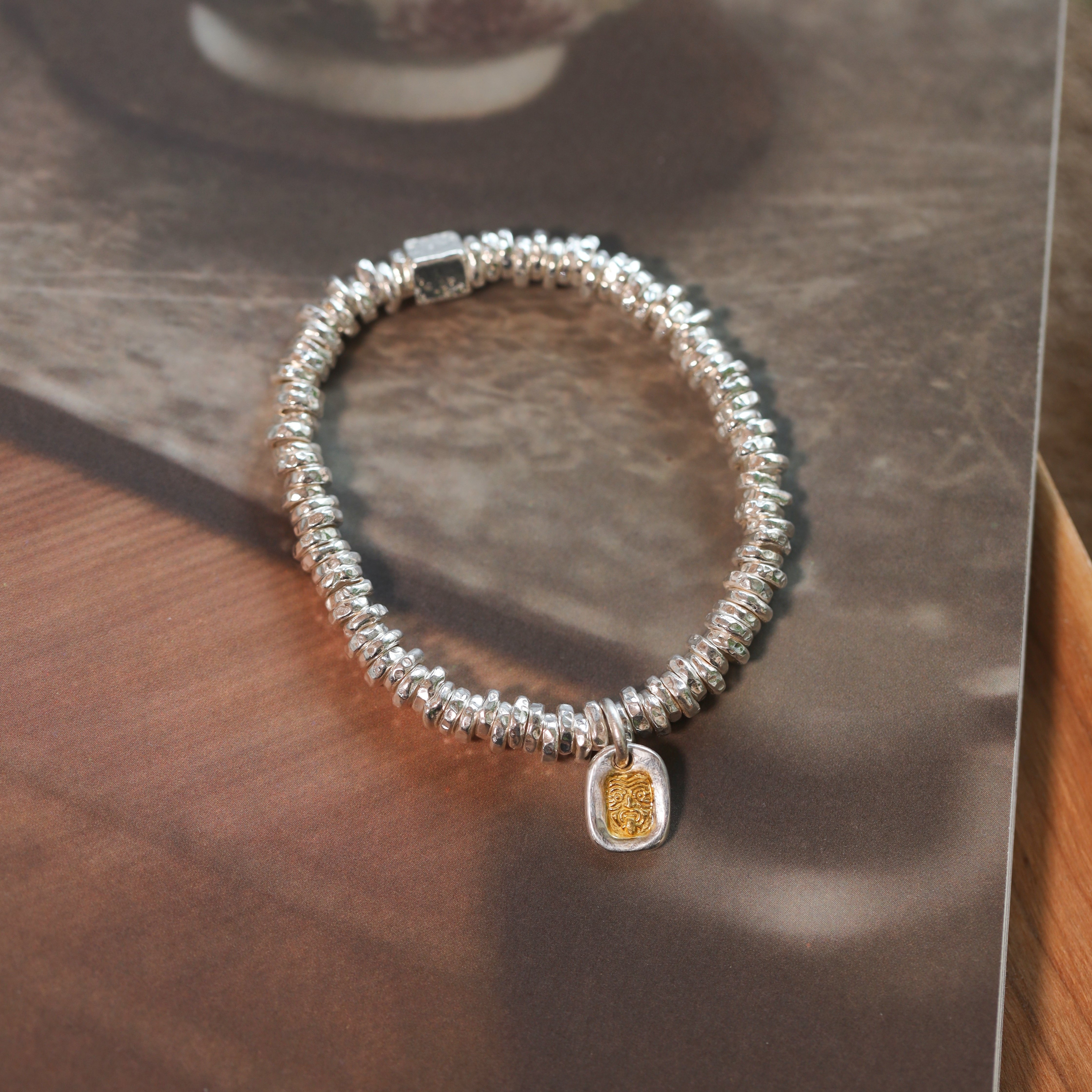 Zakiram II Heesu original handmade hammered solid 999 sterling silver 24K gold-plated small plate wrapped silver bracelet