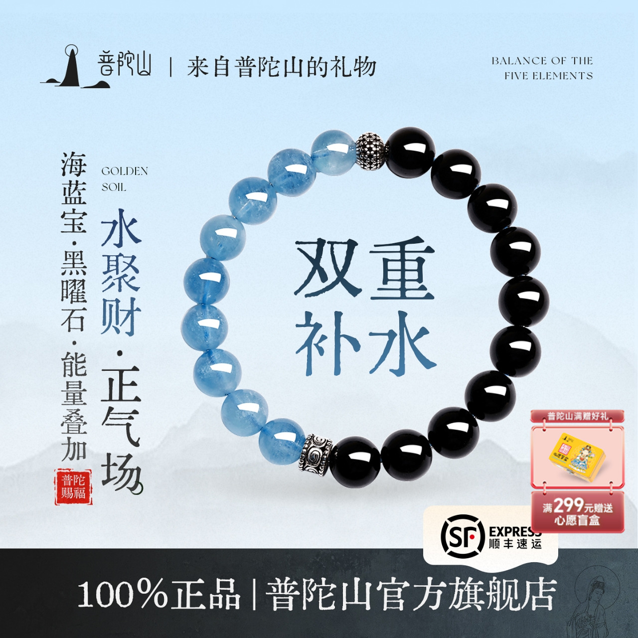 Putuo Mountain Obsidian Aquamarine Bracelet Women's Official Natural Crystal Bracelet Gift for Girlfriend