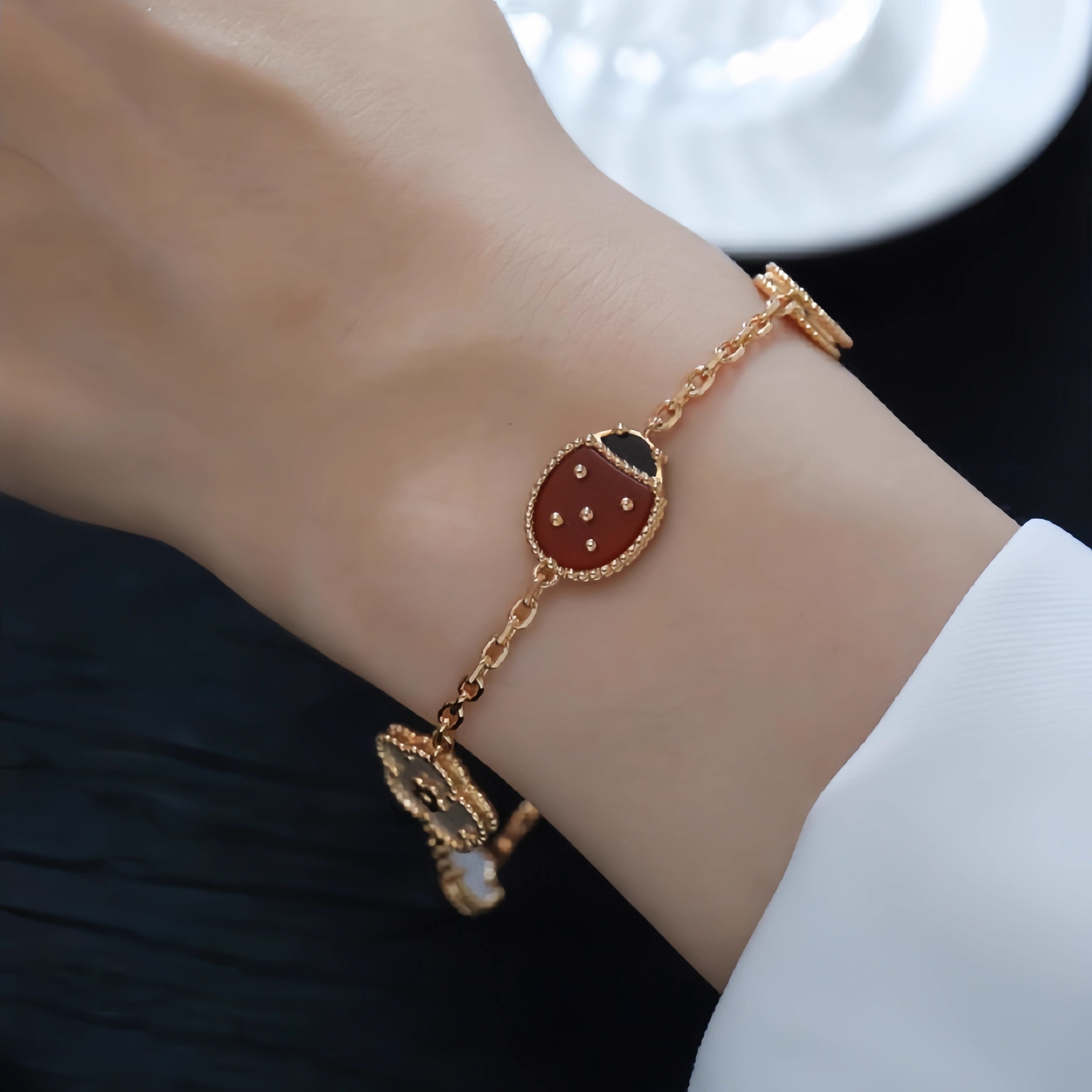 18K rose gold ladybug bracelet counter same star leaf flower bracelet lucky gift for girlfriend and wife