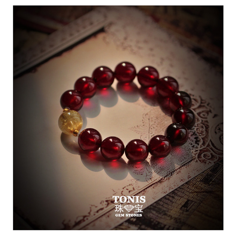 TONIS Lord of the Red River! Women must enter the plump natural ice transparent burgundy garnet bracelet 12mm large