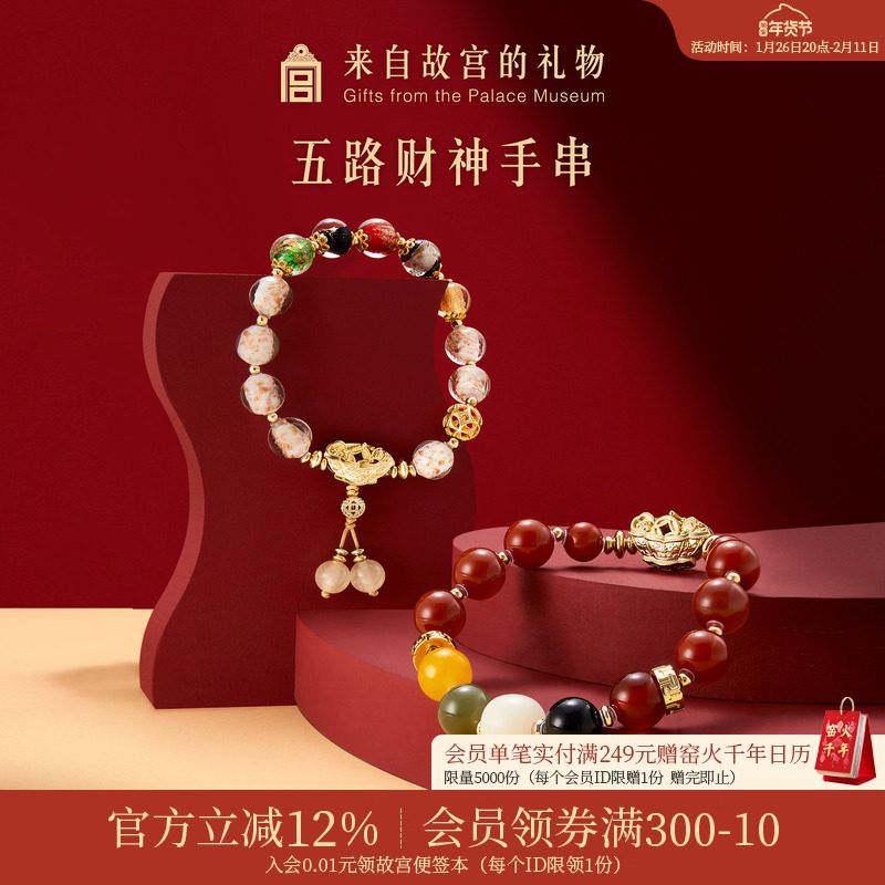 Forbidden City Taobao|Five Roads God of Wealth Bracelet Glazed Red Agate Lucky Museum Cultural and Creative Birthday Gift for Girls