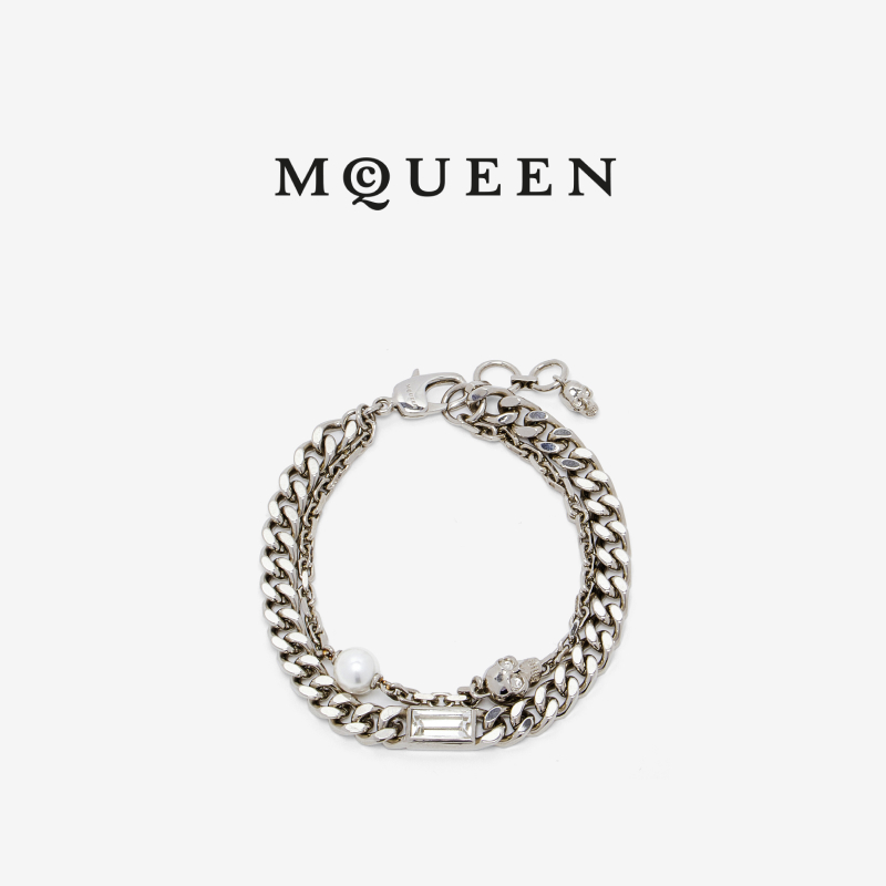 MCQUEEN Fall/Winter 25 Men's Skull & Pearl Layered Chain Bracelet