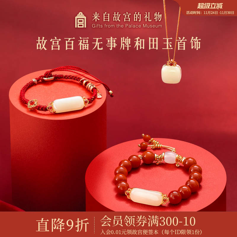 Forbidden City Taobao|Baifu Hetian jade nothing brand pendant bracelet necklace red agate bracelet New Year's birthday gift
