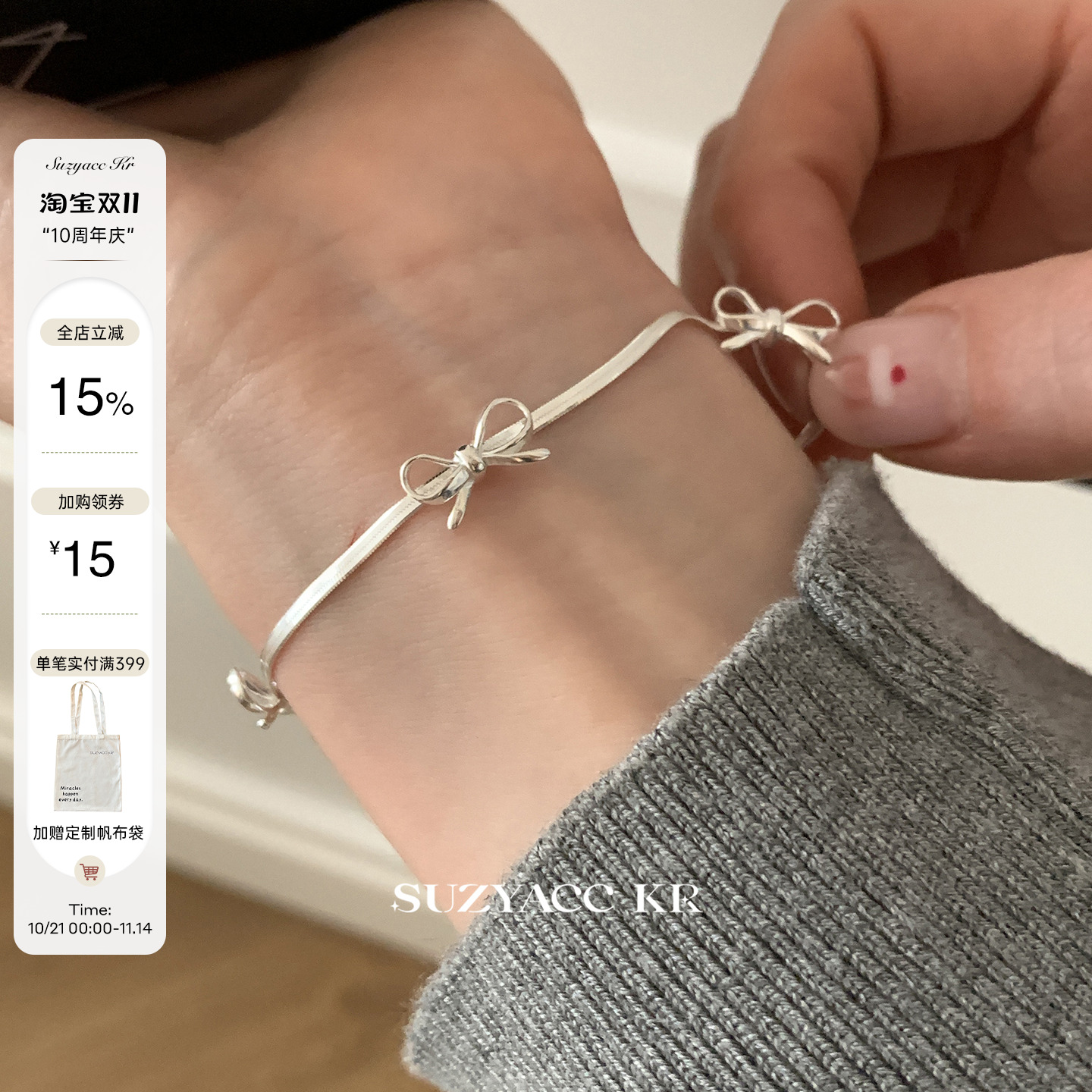 suzyacc kr minimalist sterling silver bow snake bone chain bracelet women's light luxury niche high-end sense to send girlfriend hand jewelry