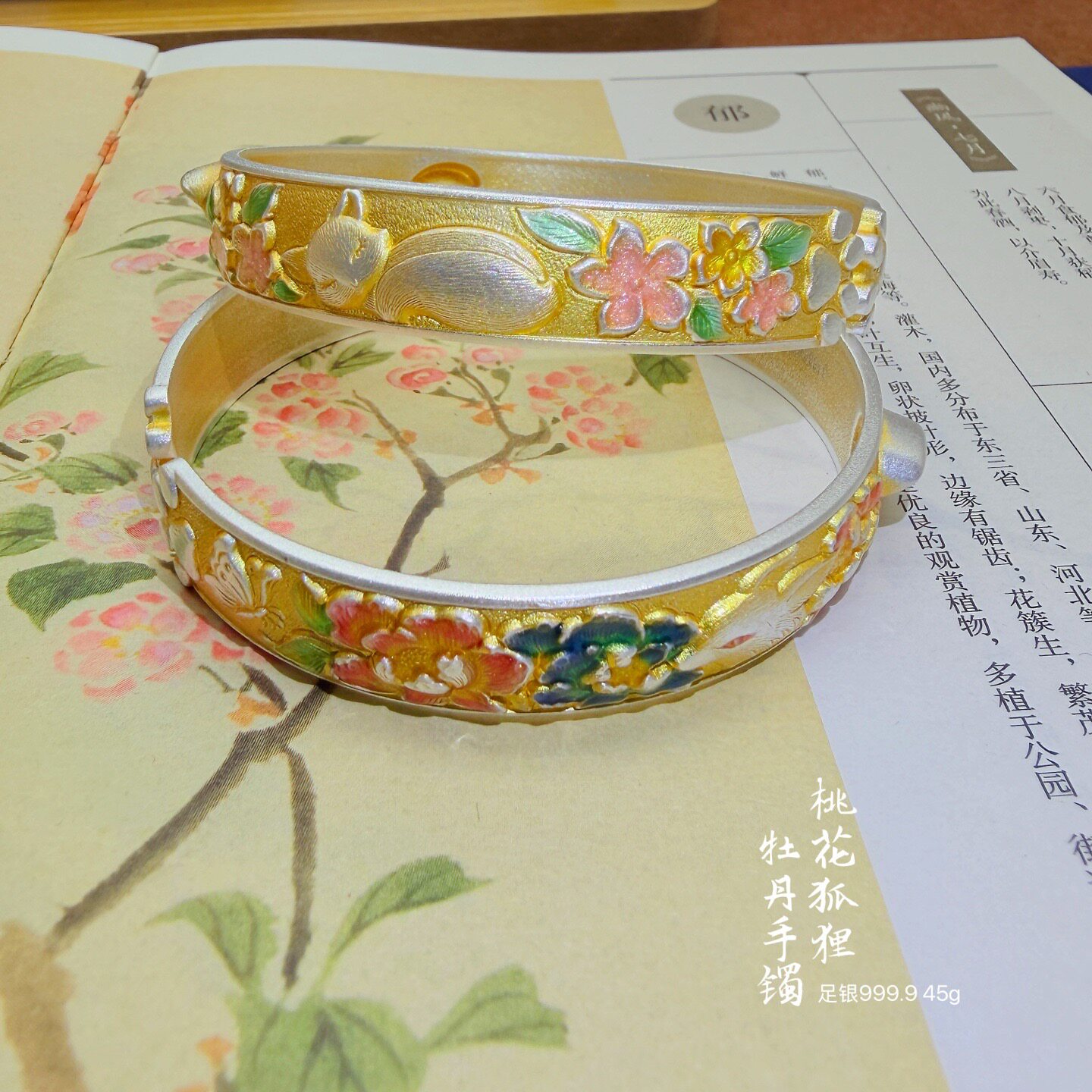 New peach blossom fox silver bracelet gold-painted enamel colorful foot silver 9999 Baifu national style opening new silver bracelet