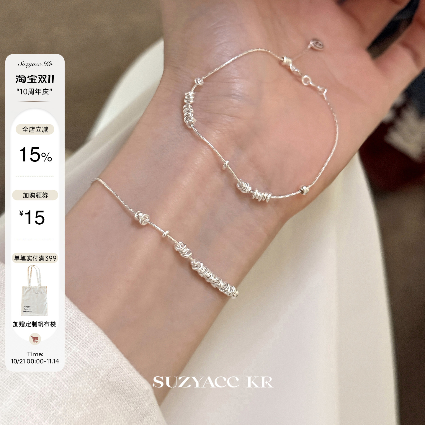 suzyacc kr old handmade silver bracelet coil bracelet light luxury niche exquisite and versatile high-end sense hand jewelry woman