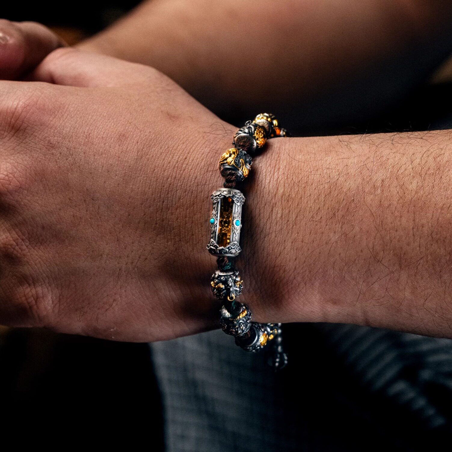 Silver jewelry foot silver bracelet silver bracelet six-character mantra couple men and women beads solid heart sutra solid men