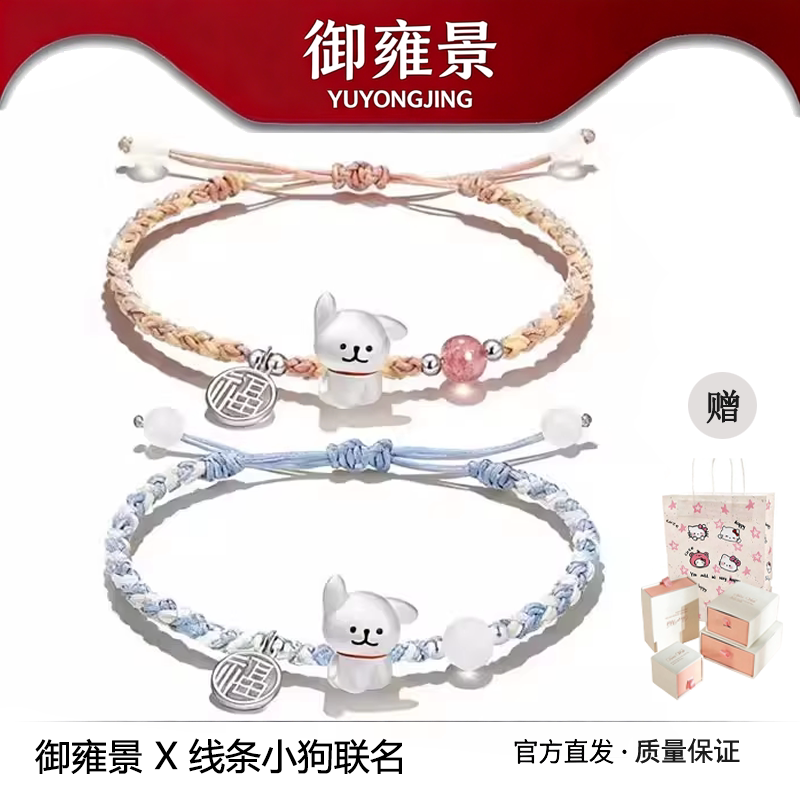 S925 foot silver cute line puppy sterling silver bracelet female niche high-end love couple bracelet for wife gifts