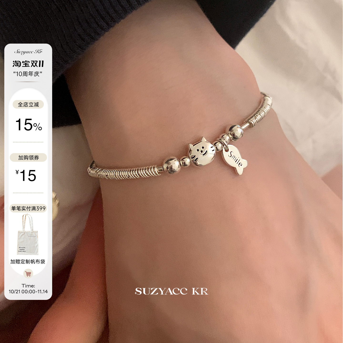 suzyacc kr simple beaded sterling silver small plate wrap kitten fish bracelet light luxury niche versatile exquisite hand jewelry