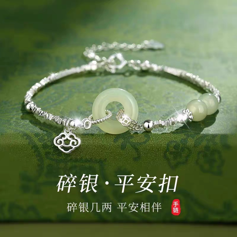 sterling silver broken silver and Tian jade safety buckle bracelet girls' silver jewelry women's birthday 520 Valentine's Day gift for girlfriend