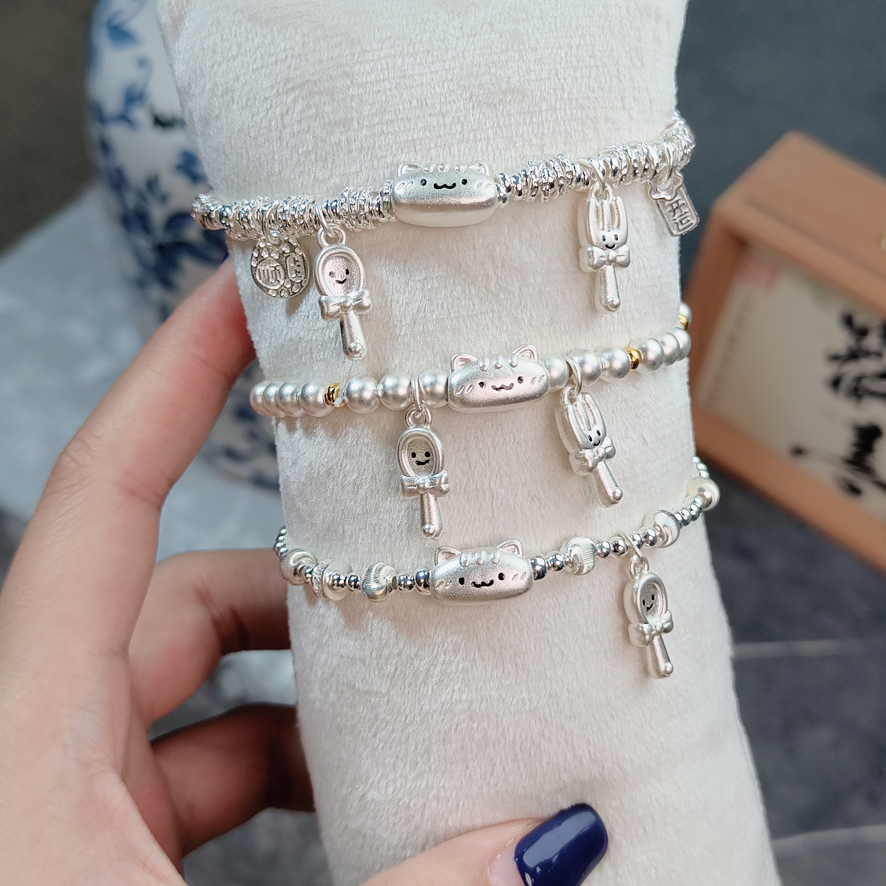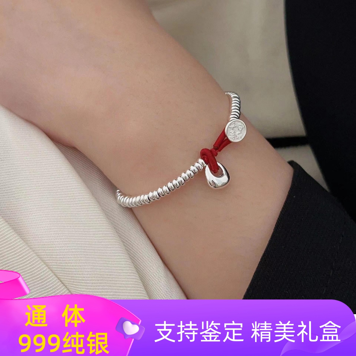 999 sterling silver peace joy silver bracelet girls' coil amulet abacus bead bracelet couple girlfriend gift