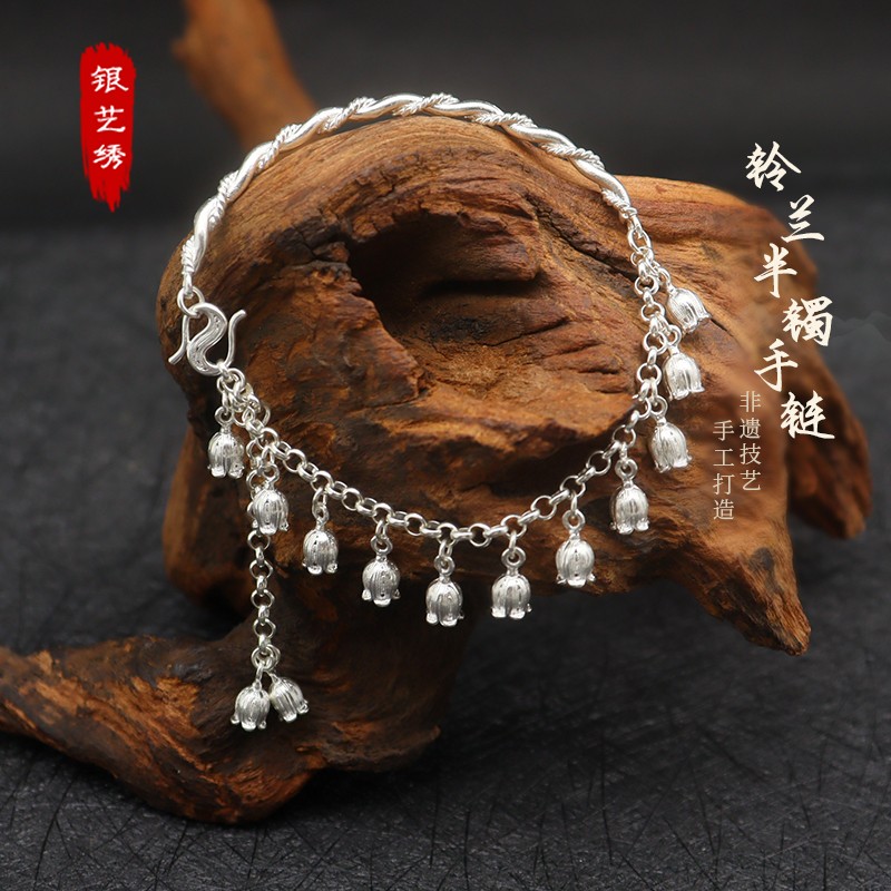 999 sterling silver lily of the valley flower half bracelet bracelet women's light luxury niche design sense high-end temperament foot silver bracelet gift