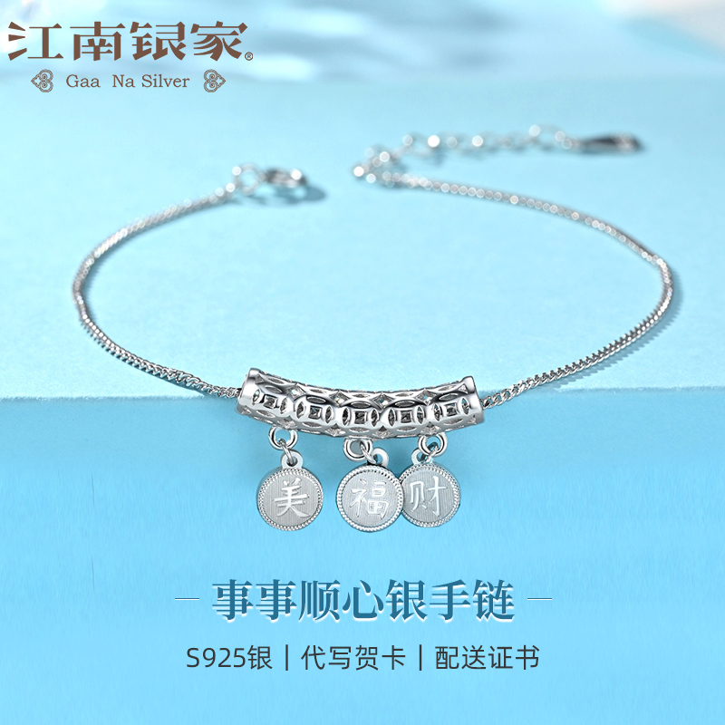 S925 silver everything goes smoothly, silver bracelet copper coin transfer tube round brand pendant national style hand ornament Qixi Festival to send wife and girlfriend