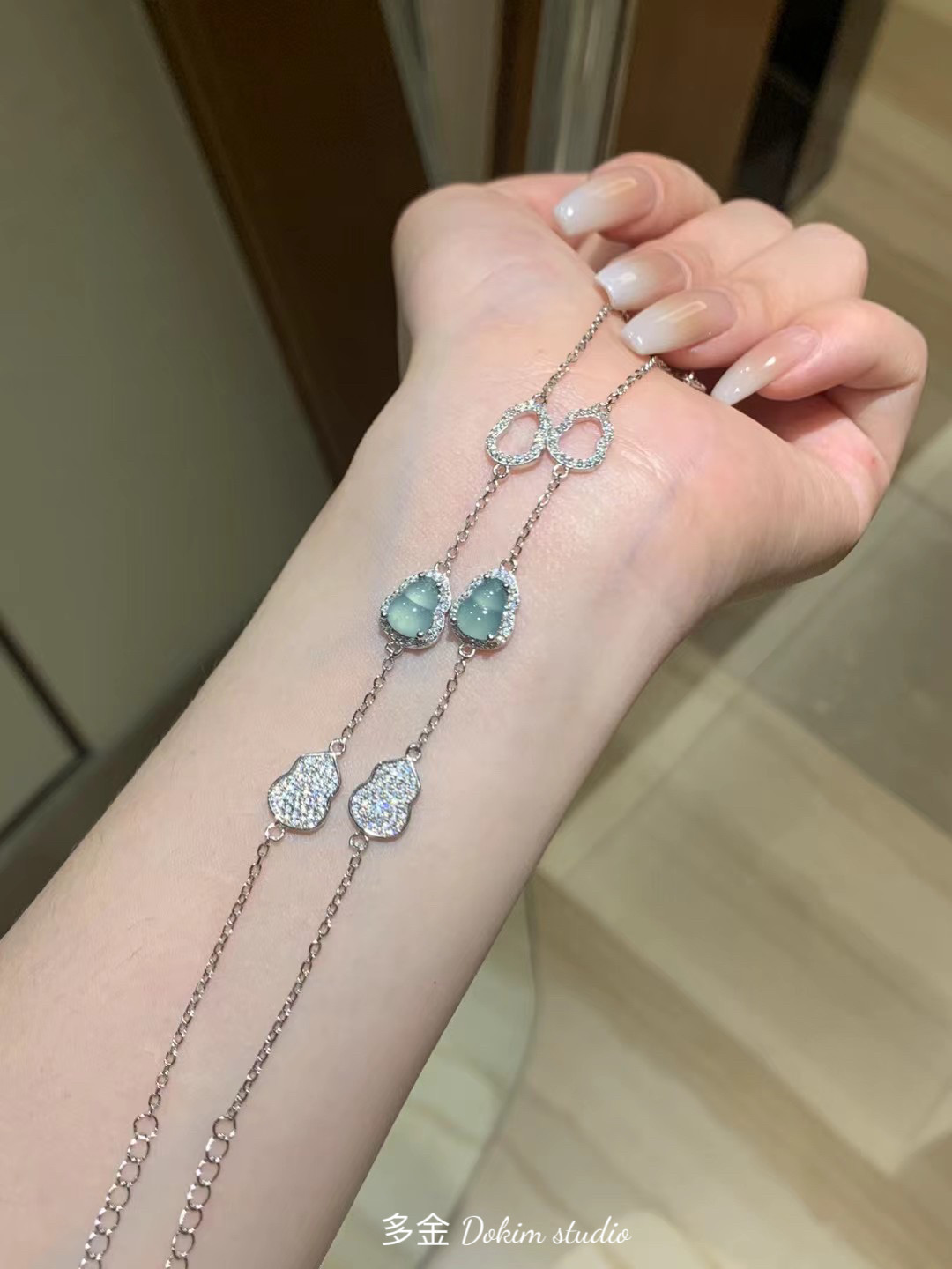S925 sterling silver natural blue water dangerous jade full diamond gourd bracelet is versatile and white explosive high-end jewelry