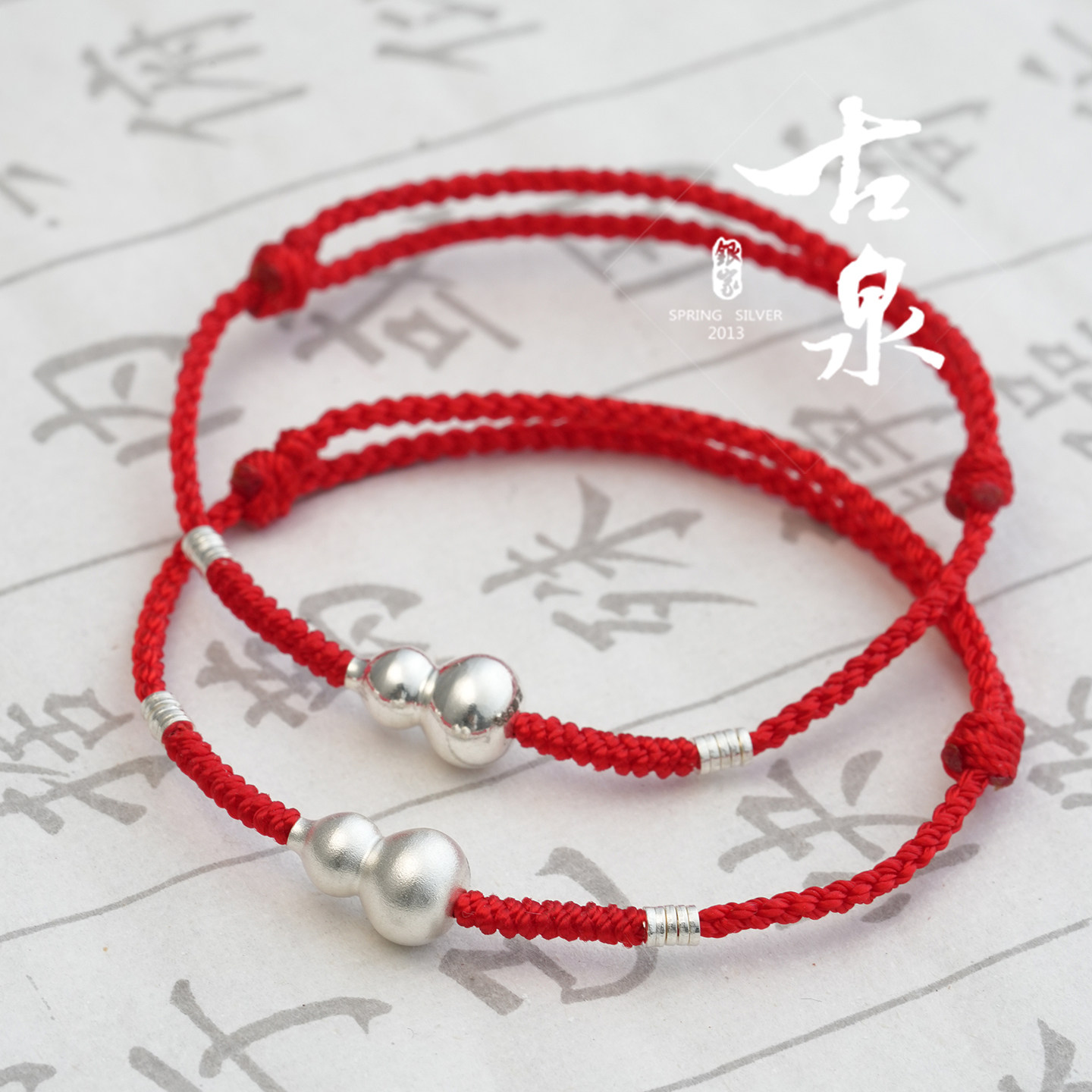 Pure silver 999 sterling silver gourd red rope bracelet coiled simple natal year good luck blessing double full bracelet to give gifts