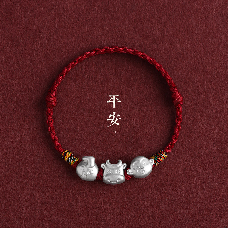 2025 Year of the Snake three-in-six foot silver zodiac red rope bracelet male and female chicken, ox monkey, natal year woven bracelet