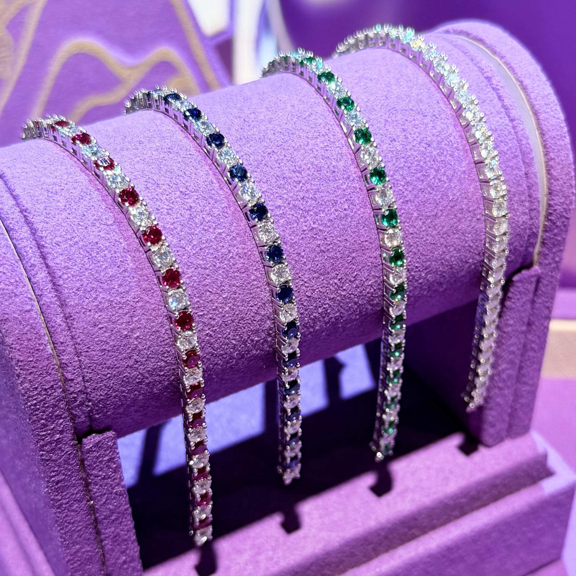 S925 Silver Plated 18K Gold Tennis Bracelet 3.0mm Cultivated Ruby Sapphire Artificial Emerald Fashion Bracelet