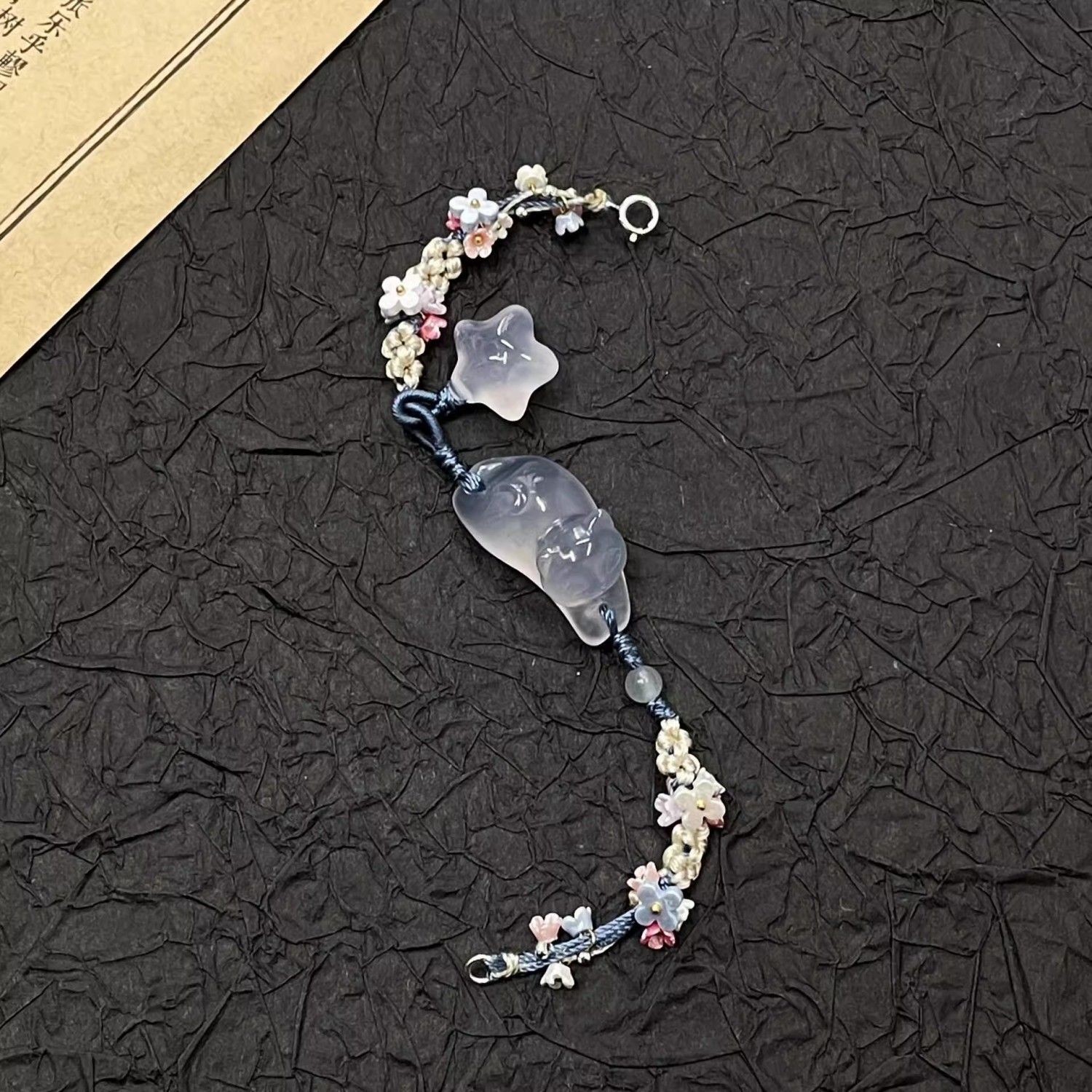 Hand woven osmanthus cat butterfly braided rope bracelet female star bracelet blue melancholy kitten